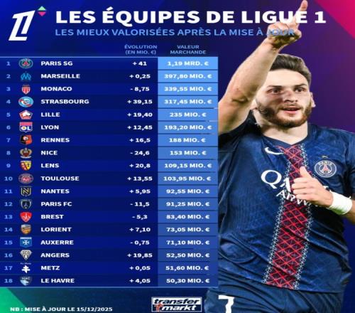 德转揭晓法甲球队身价榜巴黎锁定第一名11.9亿欧第二到第五名共同拼出12.9亿_法甲直播
