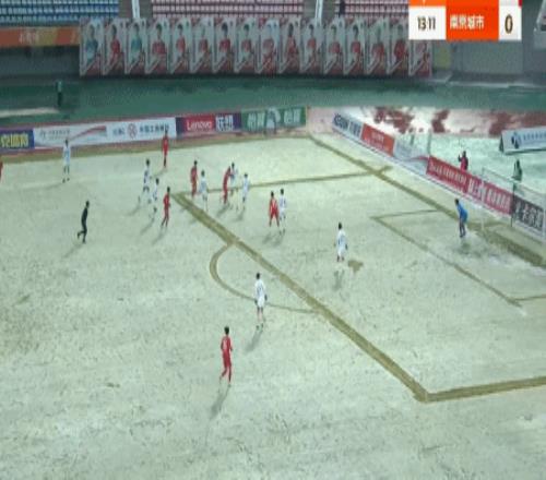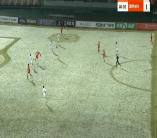 第45+2分钟,中场任意球直接吊向禁区,卢佩塔破门扳平比分,南京城市1-1!
